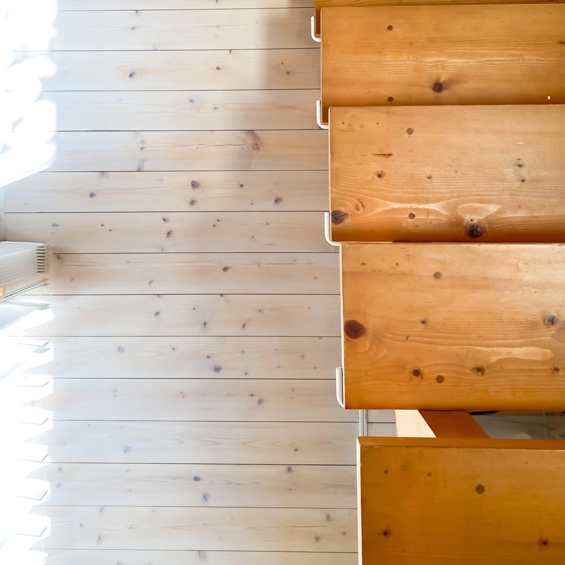 1枚目:20年使用した杉の床の表面(傷や汚れ)を削って明るい色で染めたもの。